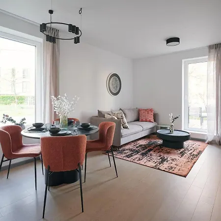 Een complete keuken beschikt over een oven en een vaatwasser voor gemak van de gasten. De Baltisch bushalte bevindt zich op 5 minuten loopafstand van het appartement.